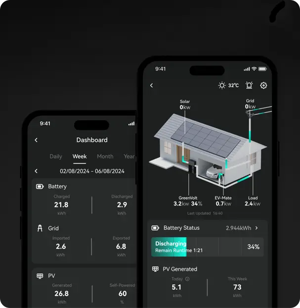 The Greeness app offers an all-in-one experience for you to manage your Greeness energy products from anywhere and at any time. To get started, download the Greeness app from the App Store or Google Play store and sign in to your Greeness Account.